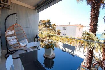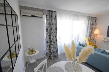 Ferienwohnung bietet Platz für 4 Gäste. Die Betten sind in Schlafzimmern, die es 1 gibt, und in Wohnzimmer, innerhalb einer Gesamtfläche von 52m2, angeordnet. Die Gäste haben eine eigene Terrasse zur Verfügung, auf der sie in warmen Sommernächten genießen können. Das Apartment bietet Meerblick. Es ist erlaubt, Speisen auf dem Gemeinschafts-Grill vorzubereiten.