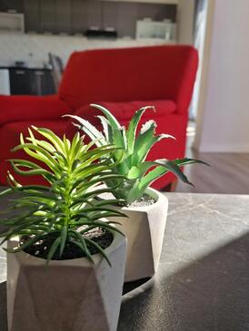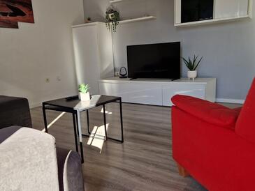Ferienwohnung bietet Platz für 6 Gäste. Die Betten sind in Schlafzimmern, die es 3 gibt, innerhalb einer Gesamtfläche von 95m2, angeordnet. Die Gäste haben einen eigenen Balkon zur Verfügung, auf der sie in warmen Sommernächten genießen können. Das Apartment bietet Meerblick.