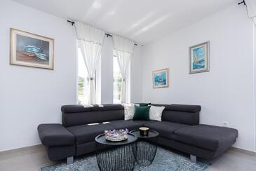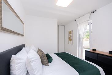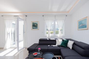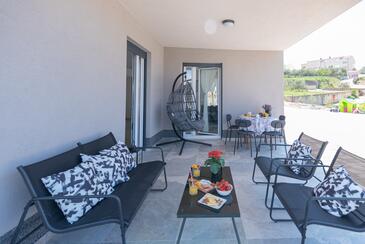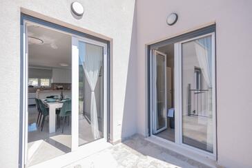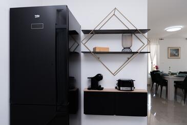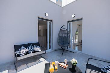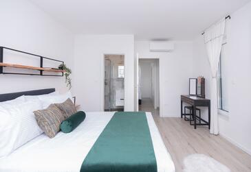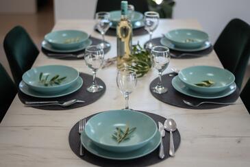 Ferienwohnung bietet Platz für 6 Gäste. Die Betten sind in Schlafzimmern, die es 2 gibt, und in Wohnzimmer, innerhalb einer Gesamtfläche von 83m2, angeordnet. Die Gäste haben eine eigene Terrasse zur Verfügung, auf der sie in warmen Sommernächten genießen können. Es ist erlaubt, Speisen auf dem Gemeinschafts-Grill vorzubereiten.
