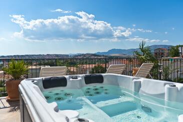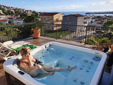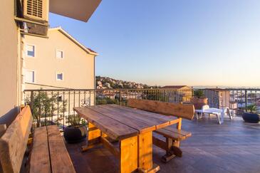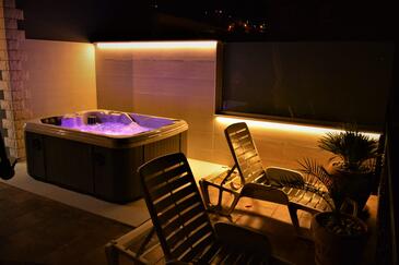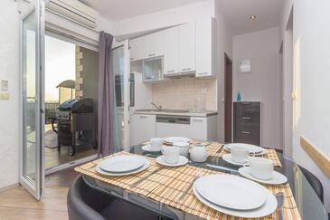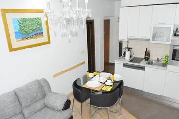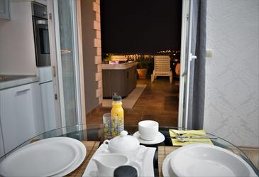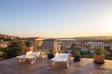 Ferienwohnung bietet Platz für 3 Gäste. Die Betten sind in Schlafzimmern, die es 1 gibt, und in Wohnzimmer, innerhalb einer Gesamtfläche von 30m2, angeordnet. Die Gäste haben eine eigene Terrasse zur Verfügung, auf der sie in warmen Sommernächten genießen können. Das Apartment bietet Meerblick. Es ist erlaubt, Speisen auf dem Gemeinschafts-Grill vorzubereiten.