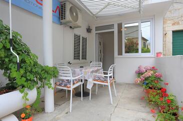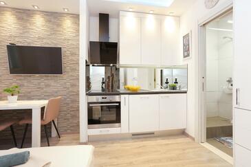 Studio bietet Platz für 2 Gäste. Die Betten sind in Schlafzimmern, die es 1 gibt, innerhalb einer Gesamtfläche von 19m2, angeordnet. Die Gäste haben eine eigene Terrasse zur Verfügung, auf der sie in warmen Sommernächten genießen können.