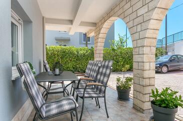 Ferienwohnung bietet Platz für 5 Gäste. Die Betten sind in Schlafzimmern, die es 3 gibt, innerhalb einer Gesamtfläche von 84m2, angeordnet. Die Gäste haben eine eigene Terrasse zur Verfügung, auf der sie in warmen Sommernächten genießen können. Es ist erlaubt, Speisen auf dem Gemeinschafts-Grill vorzubereiten.