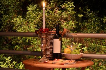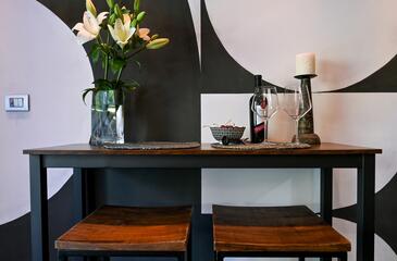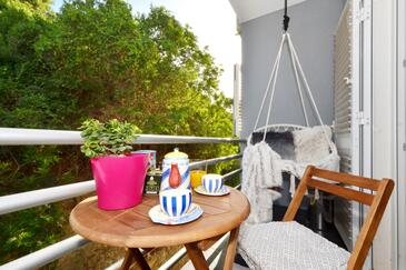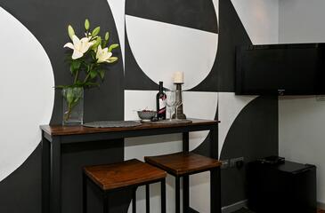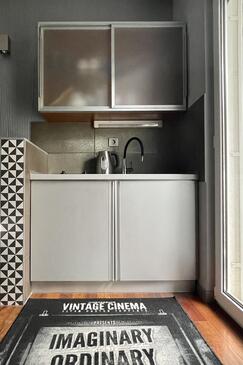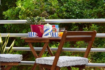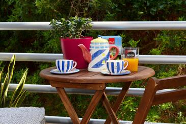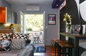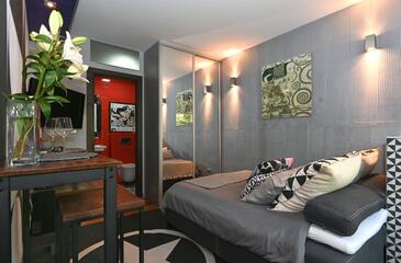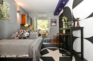 Studio bietet Platz für 2 Gäste. Die Betten sind in Schlafzimmern, die es 1 gibt, innerhalb einer Gesamtfläche von 22m2, angeordnet. Die Gäste haben einen eigenen Balkon zur Verfügung, auf der sie in warmen Sommernächten genießen können.