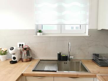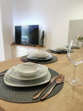 Ferienwohnung bietet Platz für 4 Gäste. Die Betten sind in Schlafzimmern, die es 2 gibt, innerhalb einer Gesamtfläche von 48m2, angeordnet. Die Gäste haben eine eigene Terrasse zur Verfügung, auf der sie in warmen Sommernächten genießen können. Es ist erlaubt, Speisen auf dem Gemeinschafts-Grill vorzubereiten.