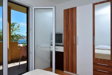Ferienwohnung bietet Platz für 5 Gäste. Die Betten sind in Schlafzimmern, die es 2 gibt, und in Wohnzimmer, innerhalb einer Gesamtfläche von 57m2, angeordnet. Die Gäste haben einen eigenen Balkon zur Verfügung, auf der sie in warmen Sommernächten genießen können. Das Apartment bietet Meerblick. Es ist erlaubt, Speisen auf dem Gemeinschafts-Grill vorzubereiten. In der Unterkunftseinheit besteht die Möglichkeit des Mitbringens von Haustieren, und die Dienstleistung ist im Preis der Unterkunft enthalten.