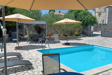 Haus bietet Platz für 6 Gäste. Die Betten sind in Schlafzimmern, die es 2 gibt, innerhalb einer Gesamtfläche von 164m2, angeordnet. Die Gäste haben einen eigenen Balkon zur Verfügung, auf der sie in warmen Sommernächten genießen können. Das Haus bietet Meerblick. Für vollen Genuss und Entspannung gibt es einen privaten Grill für Gäste dieser Unterkunft. Während ihres Aufenthalts können sich Gäste im privaten Schwimmbad entspannen. In der Unterkunftseinheit besteht die Möglichkeit des Mitbringens von Haustieren gegen Aufpreis.