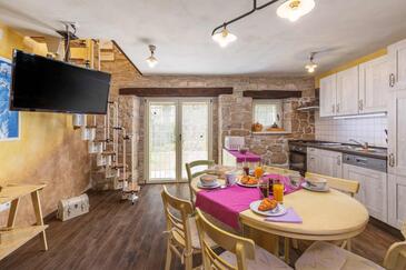 Haus bietet Platz für 4 Gäste. Die Betten sind in Schlafzimmern, die es 2 gibt, innerhalb einer Gesamtfläche von 50m2, angeordnet. Die Gäste haben eine eigene Terrasse zur Verfügung, auf der sie in warmen Sommernächten genießen können. Für vollen Genuss und Entspannung gibt es einen privaten Grill für Gäste dieser Unterkunft.