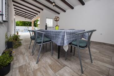 Haus bietet Platz für 8 Gäste. Die Betten sind in Schlafzimmern, die es 3 gibt, und in Wohnzimmer, innerhalb einer Gesamtfläche von 83m2, angeordnet. Die Gäste haben eine eigene Terrasse zur Verfügung, auf der sie in warmen Sommernächten genießen können. Für vollen Genuss und Entspannung gibt es einen privaten Grill für Gäste dieser Unterkunft. Während ihres Aufenthalts können sich Gäste im privaten Schwimmbad entspannen.