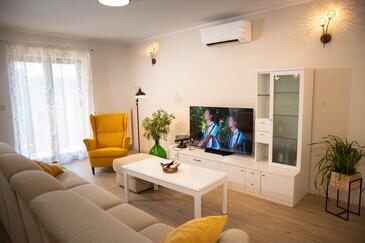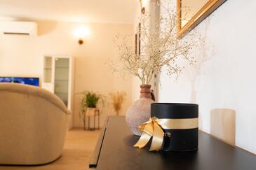 Ferienwohnung bietet Platz für 6 Gäste. Die Betten sind in Schlafzimmern, die es 3 gibt, innerhalb einer Gesamtfläche von 109m2, angeordnet. Die Gäste haben eine eigene Terrasse zur Verfügung, auf der sie in warmen Sommernächten genießen können. Es ist erlaubt, Speisen auf dem Gemeinschafts-Grill vorzubereiten. In der Unterkunftseinheit besteht die Möglichkeit des Mitbringens von Haustieren gegen Aufpreis.