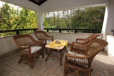 Haus bietet Platz für 8 Gäste. Die Betten sind in Schlafzimmern, die es 3 gibt, innerhalb einer Gesamtfläche von 114m2, angeordnet. Die Gäste haben eine eigene Terrasse zur Verfügung, auf der sie in warmen Sommernächten genießen können. Für vollen Genuss und Entspannung gibt es einen privaten Grill für Gäste dieser Unterkunft. Durch das Schlafzimmer der gebuchten Unterkunftseinheit geht man in die andere Räume der Einheit.