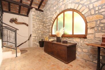 Haus bietet Platz für 8 Gäste. Die Betten sind in Schlafzimmern, die es 3 gibt, innerhalb einer Gesamtfläche von 114m2, angeordnet. Die Gäste haben eine eigene Terrasse zur Verfügung, auf der sie in warmen Sommernächten genießen können. Für vollen Genuss und Entspannung gibt es einen privaten Grill für Gäste dieser Unterkunft. Durch das Schlafzimmer der gebuchten Unterkunftseinheit geht man in die andere Räume der Einheit.