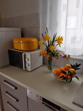 Ferienwohnung bietet Platz für 6 Gäste. Die Betten sind in Schlafzimmern, die es 3 gibt, innerhalb einer Gesamtfläche von 86m2, angeordnet. Die Gäste haben einen eigenen Balkon zur Verfügung, auf der sie in warmen Sommernächten genießen können. Es ist erlaubt, Speisen auf dem Gemeinschafts-Grill vorzubereiten.