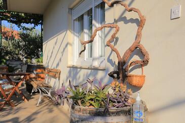 Ferienwohnung bietet Platz für 3 Gäste. Die Betten sind in Schlafzimmern, die es 2 gibt, innerhalb einer Gesamtfläche von 35m2, angeordnet. Die Gäste haben eine eigene Terrasse zur Verfügung, auf der sie in warmen Sommernächten genießen können.