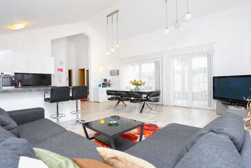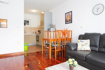 Ferienwohnung bietet Platz für 6 Gäste. Die Betten sind in Schlafzimmern, die es 2 gibt, und in Wohnzimmer, innerhalb einer Gesamtfläche von 81m2, angeordnet. Die Gäste haben eine eigene Terrasse zur Verfügung, auf der sie in warmen Sommernächten genießen können. Das Apartment bietet Meerblick.