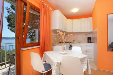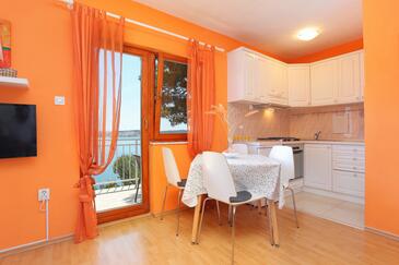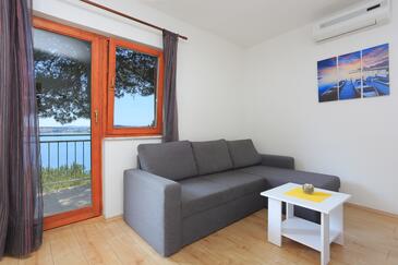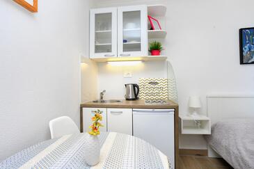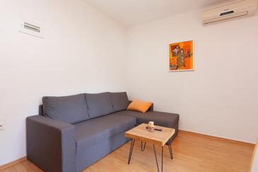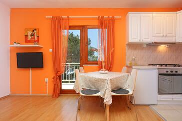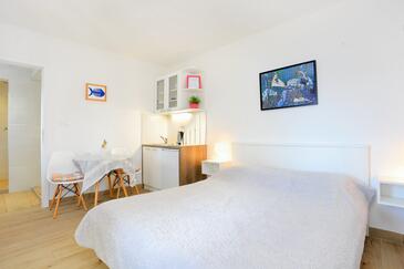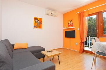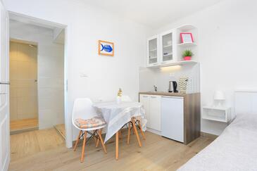Ferienwohnung bietet Platz für 4 Gäste. Die Betten sind in Schlafzimmern, die es 1 gibt, und in Wohnzimmer, innerhalb einer Gesamtfläche von 37m2, angeordnet. Die Gäste haben einen eigenen Balkon zur Verfügung, auf der sie in warmen Sommernächten genießen können. Das Apartment bietet Meerblick. Es ist erlaubt, Speisen auf dem Gemeinschafts-Grill vorzubereiten. In der gebuchten Unterkunftseinheit zahlt man am Ort ein Depositum ( der Preis ist an der Internetseite angeführt ).
