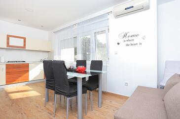 Ferienwohnung bietet Platz für 4 Gäste. Die Betten sind in Schlafzimmern, die es 2 gibt, innerhalb einer Gesamtfläche von 61m2, angeordnet. Die Gäste haben eine eigene Terrasse zur Verfügung, auf der sie in warmen Sommernächten genießen können. Es ist erlaubt, Speisen auf dem Gemeinschafts-Grill vorzubereiten.