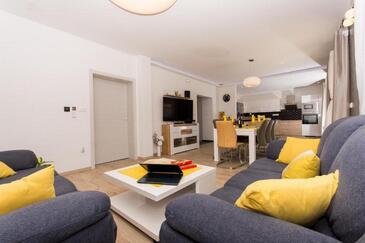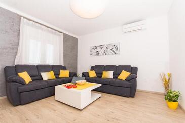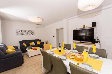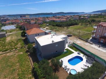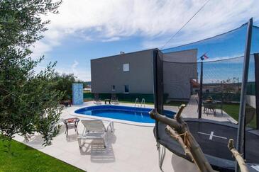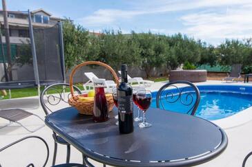 Ferienwohnung bietet Platz für 8 Gäste. Die Betten sind in Schlafzimmern, die es 3 gibt, und in Wohnzimmer, innerhalb einer Gesamtfläche von 65m2, angeordnet. Die Gäste haben eine eigene Terrasse zur Verfügung, auf der sie in warmen Sommernächten genießen können. Während ihres Aufenthalts können Gäste das gemeinsam zur Nutzung stehende Schwimmbad benutzen.