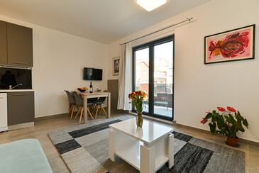 Ferienwohnung bietet Platz für 2 Gäste. Die Betten sind in Schlafzimmern, die es 1 gibt, innerhalb einer Gesamtfläche von 43m2, angeordnet. Die Gäste haben eine eigene Terrasse zur Verfügung, auf der sie in warmen Sommernächten genießen können. Es ist erlaubt, Speisen auf dem Gemeinschafts-Grill vorzubereiten.