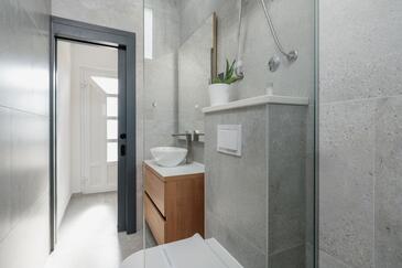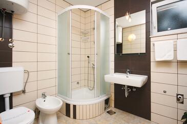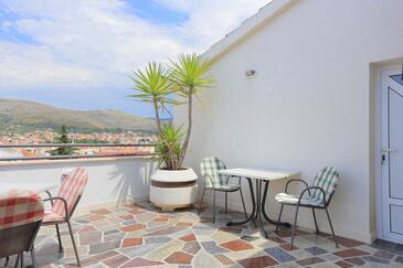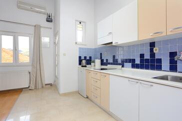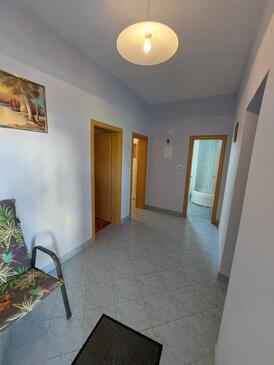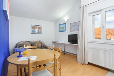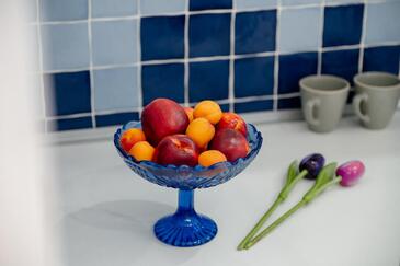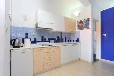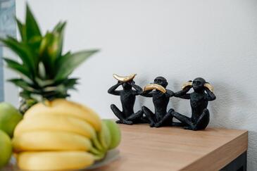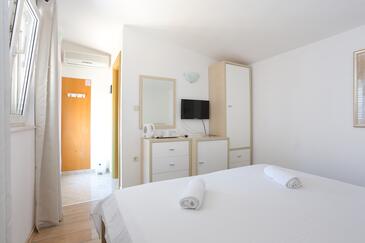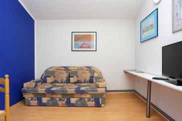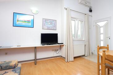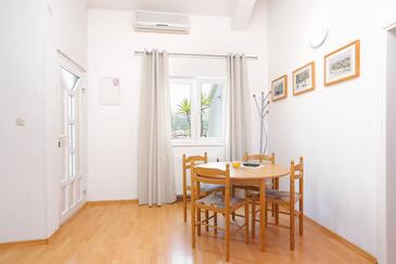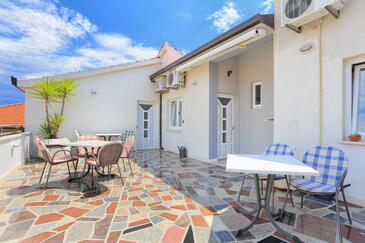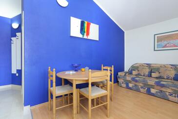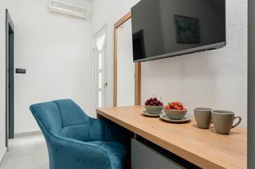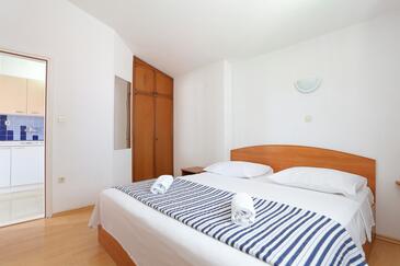 Ferienwohnung bietet Platz für 4 Gäste. Die Betten sind in Schlafzimmern, die es 2 gibt, innerhalb einer Gesamtfläche von 44m2, angeordnet. Die Gäste haben eine eigene Terrasse zur Verfügung, auf der sie in warmen Sommernächten genießen können. Das Apartment bietet Meerblick. Es ist erlaubt, Speisen auf dem Gemeinschafts-Grill vorzubereiten.