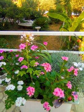 Ferienwohnung bietet Platz für 6 Gäste. Die Betten sind in Schlafzimmern, die es 3 gibt, innerhalb einer Gesamtfläche von 96m2, angeordnet. Die Gäste haben eine eigene Terrasse zur Verfügung, auf der sie in warmen Sommernächten genießen können. Das Apartment bietet Meerblick. Es ist erlaubt, Speisen auf dem Gemeinschafts-Grill vorzubereiten. In der Unterkunftseinheit besteht die Möglichkeit des Mitbringens von Haustieren gegen Aufpreis.