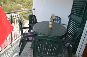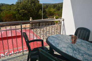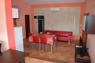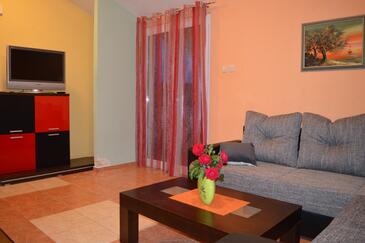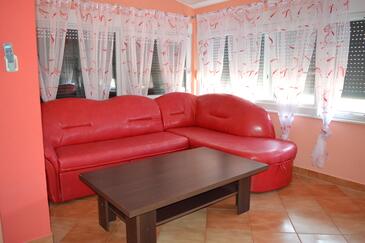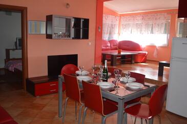Ferienwohnung bietet Platz für 6 Gäste. Die Betten sind in Schlafzimmern, die es 2 gibt, und in Wohnzimmer, innerhalb einer Gesamtfläche von 54m2, angeordnet. Die Gäste haben einen eigenen Balkon zur Verfügung, auf der sie in warmen Sommernächten genießen können. Es ist erlaubt, Speisen auf dem Gemeinschafts-Grill vorzubereiten. Während ihres Aufenthalts können Gäste das gemeinsam zur Nutzung stehende Schwimmbad benutzen. In der Unterkunftseinheit besteht die Möglichkeit des Mitbringens von Haustieren gegen Aufpreis.