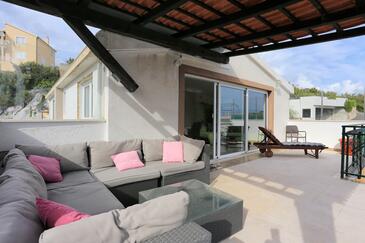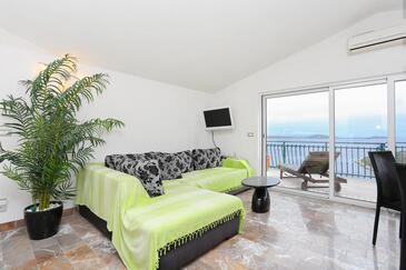 Ferienwohnung bietet Platz für 6 Gäste. Die Betten sind in Schlafzimmern, die es 2 gibt, und in Wohnzimmer, innerhalb einer Gesamtfläche von 67m2, angeordnet. Die Gäste haben eine eigene Terrasse zur Verfügung, auf der sie in warmen Sommernächten genießen können. Das Apartment bietet Meerblick. Für vollen Genuss und Entspannung gibt es einen privaten Grill für Gäste dieser Unterkunft.
