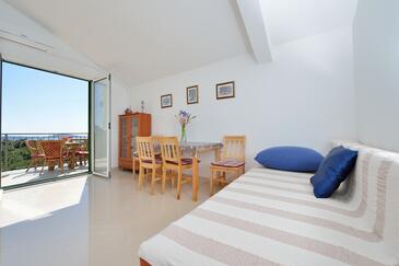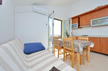 Ferienwohnung bietet Platz für 4 Gäste. Die Betten sind in Schlafzimmern, die es 1 gibt, und in Wohnzimmer, innerhalb einer Gesamtfläche von 39m2, angeordnet. Die Gäste haben eine eigene Terrasse zur Verfügung, auf der sie in warmen Sommernächten genießen können. Das Apartment bietet Meerblick. Es ist erlaubt, Speisen auf dem Gemeinschafts-Grill vorzubereiten. In der Unterkunftseinheit besteht die Möglichkeit des Mitbringens von Haustieren, und die Dienstleistung ist im Preis der Unterkunft enthalten.