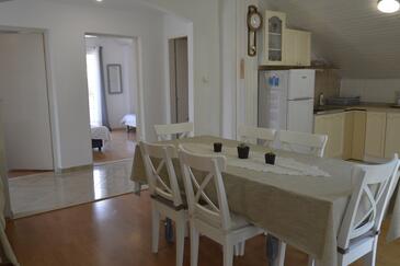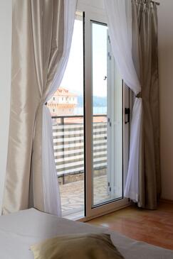 Ferienwohnung bietet Platz für 6 Gäste. Die Betten sind in Schlafzimmern, die es 2 gibt, innerhalb einer Gesamtfläche von 70m2, angeordnet. Die Gäste haben eine eigene Terrasse zur Verfügung, auf der sie in warmen Sommernächten genießen können. Das Apartment bietet Meerblick. Es ist erlaubt, Speisen auf dem Gemeinschafts-Grill vorzubereiten.
