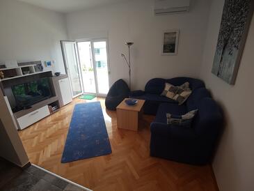 Ferienwohnung bietet Platz für 5 Gäste. Die Betten sind in Schlafzimmern, die es 2 gibt, und in Wohnzimmer, innerhalb einer Gesamtfläche von 90m2, angeordnet. Die Gäste haben eine eigene Terrasse zur Verfügung, auf der sie in warmen Sommernächten genießen können. Das Apartment bietet Meerblick. Es ist erlaubt, Speisen auf dem Gemeinschafts-Grill vorzubereiten. In der Unterkunftseinheit besteht die Möglichkeit des Mitbringens von Haustieren, und die Dienstleistung ist im Preis der Unterkunft enthalten.