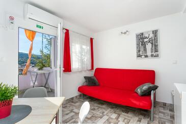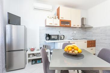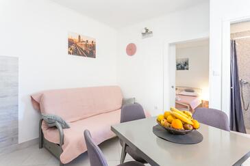 Ferienwohnung bietet Platz für 4 Gäste. Die Betten sind in Schlafzimmern, die es 1 gibt, und in Wohnzimmer, innerhalb einer Gesamtfläche von 30m2, angeordnet. Die Gäste haben eine eigene Terrasse zur Verfügung, auf der sie in warmen Sommernächten genießen können. Es ist erlaubt, Speisen auf dem Gemeinschafts-Grill vorzubereiten.