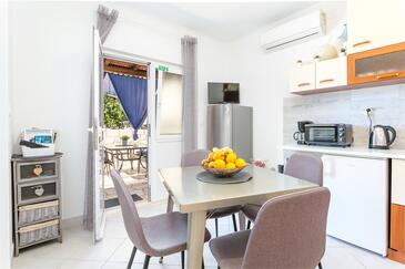 Ferienwohnung bietet Platz für 4 Gäste. Die Betten sind in Schlafzimmern, die es 1 gibt, und in Wohnzimmer, innerhalb einer Gesamtfläche von 30m2, angeordnet. Die Gäste haben eine eigene Terrasse zur Verfügung, auf der sie in warmen Sommernächten genießen können. Es ist erlaubt, Speisen auf dem Gemeinschafts-Grill vorzubereiten.