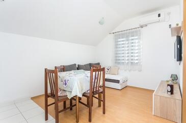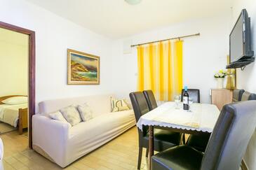 Ferienwohnung bietet Platz für 5 Gäste. Die Betten sind in Schlafzimmern, die es 2 gibt, und in Wohnzimmer, innerhalb einer Gesamtfläche von 39m2, angeordnet. Die Gäste haben einen eigenen Balkon zur Verfügung, auf der sie in warmen Sommernächten genießen können. Das Apartment bietet Meerblick. Es ist erlaubt, Speisen auf dem Gemeinschafts-Grill vorzubereiten.