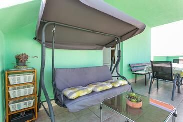 Ferienwohnung bietet Platz für 5 Gäste. Die Betten sind in Schlafzimmern, die es 2 gibt, und in Wohnzimmer, innerhalb einer Gesamtfläche von 39m2, angeordnet. Die Gäste haben einen eigenen Balkon zur Verfügung, auf der sie in warmen Sommernächten genießen können. Das Apartment bietet Meerblick. Es ist erlaubt, Speisen auf dem Gemeinschafts-Grill vorzubereiten.