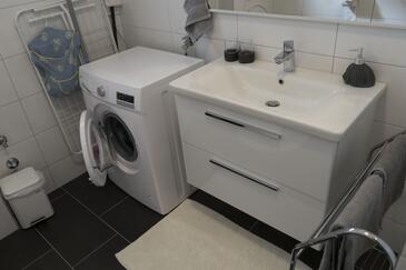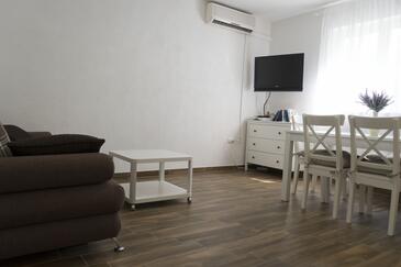 Ferienwohnung bietet Platz für 7 Gäste. Die Betten sind in Schlafzimmern, die es 2 gibt, und in Wohnzimmer, innerhalb einer Gesamtfläche von 60m2, angeordnet. Die Gäste haben eine eigene Terrasse zur Verfügung, auf der sie in warmen Sommernächten genießen können. Es ist erlaubt, Speisen auf dem Gemeinschafts-Grill vorzubereiten. In der Unterkunftseinheit besteht die Möglichkeit des Mitbringens von Haustieren, und die Dienstleistung ist im Preis der Unterkunft enthalten.