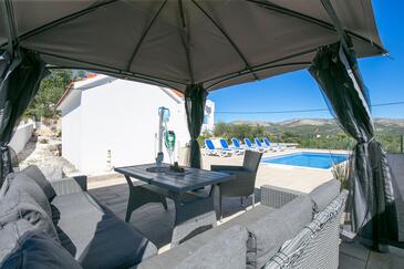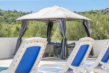 Haus bietet Platz für 6 Gäste. Die Betten sind in Schlafzimmern, die es 2 gibt, und in Wohnzimmer, innerhalb einer Gesamtfläche von 65m2, angeordnet. Die Gäste haben eine eigene Terrasse zur Verfügung, auf der sie in warmen Sommernächten genießen können. Es ist erlaubt, Speisen auf dem Gemeinschafts-Grill vorzubereiten. Während ihres Aufenthalts können sich Gäste im privaten Schwimmbad entspannen. In der Unterkunftseinheit besteht die Möglichkeit des Mitbringens von Haustieren gegen Aufpreis.