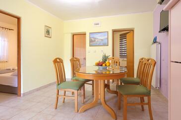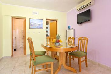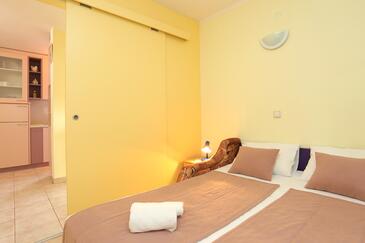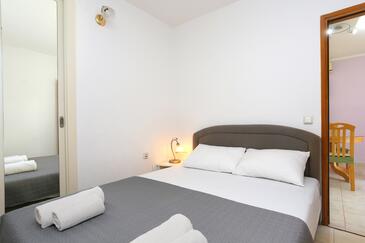 Ferienwohnung bietet Platz für 5 Gäste. Die Betten sind in Schlafzimmern, die es 3 gibt, innerhalb einer Gesamtfläche von 42m2, angeordnet. Die Gäste haben eine eigene Terrasse zur Verfügung, auf der sie in warmen Sommernächten genießen können. Es ist erlaubt, Speisen auf dem Gemeinschafts-Grill vorzubereiten. In der Unterkunftseinheit besteht die Möglichkeit des Mitbringens von Haustieren gegen Aufpreis.