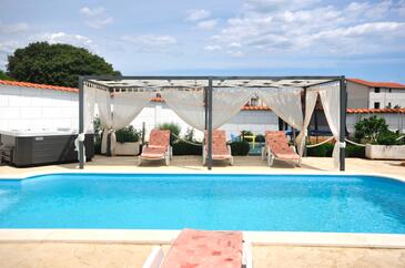 Haus bietet Platz für 8 Gäste. Die Betten sind in Schlafzimmern, die es 4 gibt, innerhalb einer Gesamtfläche von 136m2, angeordnet. Die Gäste haben eine eigene Terrasse zur Verfügung, auf der sie in warmen Sommernächten genießen können. Für vollen Genuss und Entspannung gibt es einen privaten Grill für Gäste dieser Unterkunft. Während ihres Aufenthalts können sich Gäste im privaten Schwimmbad entspannen. In der Unterkunftseinheit besteht die Möglichkeit des Mitbringens von Haustieren, und die Dienstleistung ist im Preis der Unterkunft enthalten.