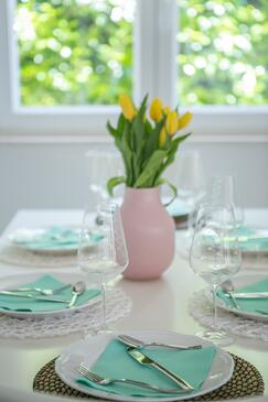 Haus bietet Platz für 6 Gäste. Die Betten sind in Schlafzimmern, die es 3 gibt, innerhalb einer Gesamtfläche von 140m2, angeordnet. Die Gäste haben eine eigene Terrasse zur Verfügung, auf der sie in warmen Sommernächten genießen können. Das Haus bietet Meerblick. Für vollen Genuss und Entspannung gibt es einen privaten Grill für Gäste dieser Unterkunft. Während ihres Aufenthalts können sich Gäste im privaten Schwimmbad entspannen.