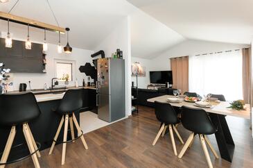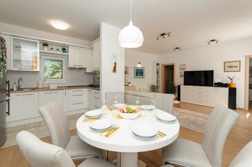 Haus bietet Platz für 10 Gäste. Die Betten sind in Schlafzimmern, die es 5 gibt, und in Wohnzimmer, innerhalb einer Gesamtfläche von 210m2, angeordnet. Die Gäste haben eine eigene Terrasse zur Verfügung, auf der sie in warmen Sommernächten genießen können. Das Haus bietet Meerblick. Für vollen Genuss und Entspannung gibt es einen privaten Grill für Gäste dieser Unterkunft. Während ihres Aufenthalts können sich Gäste im privaten Schwimmbad entspannen. In der gebuchten Unterkunftseinheit zahlt man am Ort ein Depositum ( der Preis ist an der Internetseite angeführt ).