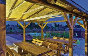 Ferienwohnung bietet Platz für 5 Gäste. Die Betten sind in Schlafzimmern, die es 2 gibt, und in Wohnzimmer, innerhalb einer Gesamtfläche von 110m2, angeordnet. Die Gäste haben eine eigene Terrasse zur Verfügung, auf der sie in warmen Sommernächten genießen können. Für vollen Genuss und Entspannung gibt es einen privaten Grill für Gäste dieser Unterkunft. Während ihres Aufenthalts können sich Gäste im privaten Schwimmbad entspannen.
