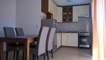 Ferienwohnung bietet Platz für 6 Gäste. Die Betten sind in Schlafzimmern, die es 2 gibt, und in Esszimmer, innerhalb einer Gesamtfläche von 49m2, angeordnet. Die Gäste haben eine eigene Terrasse zur Verfügung, auf der sie in warmen Sommernächten genießen können. Es ist erlaubt, Speisen auf dem Gemeinschafts-Grill vorzubereiten.