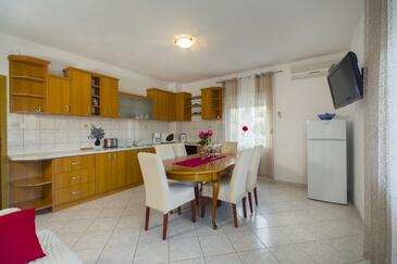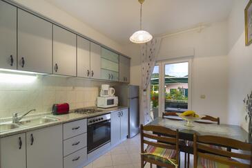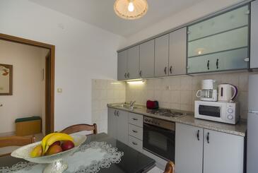 Ferienwohnung bietet Platz für 3 Gäste. Die Betten sind in Schlafzimmern, die es 1 gibt, innerhalb einer Gesamtfläche von 31m2, angeordnet. Die Gäste haben eine eigene Terrasse zur Verfügung, auf der sie in warmen Sommernächten genießen können. Das Apartment bietet Meerblick. Es ist erlaubt, Speisen auf dem Gemeinschafts-Grill vorzubereiten.