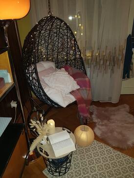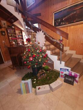 Haus bietet Platz für 7 Gäste. Die Betten sind in Schlafzimmern, die es 3 gibt, und in Wohnzimmer, innerhalb einer Gesamtfläche von 102m2, angeordnet. Die Gäste haben eine eigene Terrasse zur Verfügung, auf der sie in warmen Sommernächten genießen können. Das Haus bietet Meerblick. Für vollen Genuss und Entspannung gibt es einen privaten Grill für Gäste dieser Unterkunft. In der Unterkunftseinheit besteht die Möglichkeit des Mitbringens von Haustieren, und die Dienstleistung ist im Preis der Unterkunft enthalten. Räume der gebuchten Unterkunftseinheit werden nicht in eine Ganze verbunden.