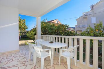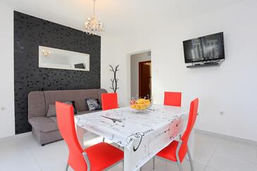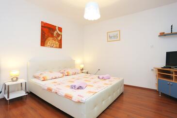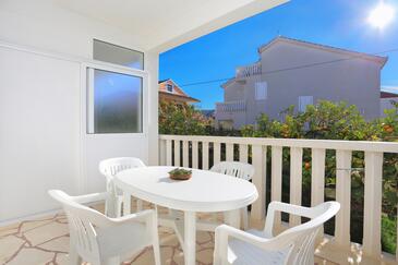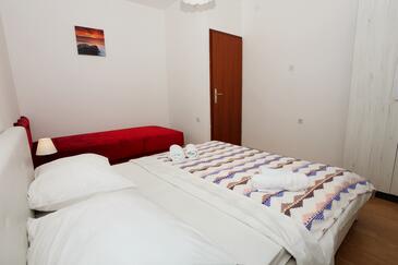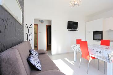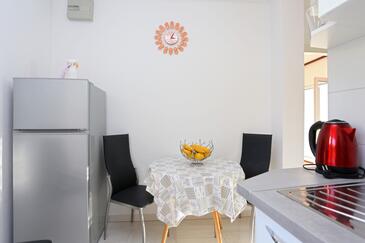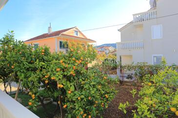 Ferienwohnung bietet Platz für 5 Gäste. Die Betten sind in Schlafzimmern, die es 2 gibt, innerhalb einer Gesamtfläche von 50m2, angeordnet. Die Gäste haben eine eigene Terrasse zur Verfügung, auf der sie in warmen Sommernächten genießen können. Das Apartment bietet Meerblick. Es ist erlaubt, Speisen auf dem Gemeinschafts-Grill vorzubereiten.