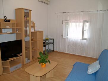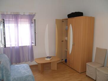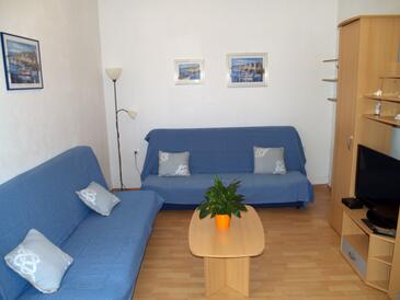 Ferienwohnung bietet Platz für 7 Gäste. Die Betten sind in Schlafzimmern, die es 3 gibt, und in Wohnzimmer, innerhalb einer Gesamtfläche von 64m2, angeordnet. Die Gäste haben eine eigene Terrasse zur Verfügung, auf der sie in warmen Sommernächten genießen können. Das Apartment bietet Meerblick. Es ist erlaubt, Speisen auf dem Gemeinschafts-Grill vorzubereiten.