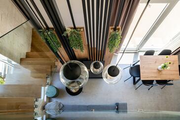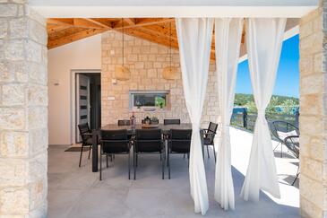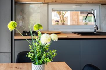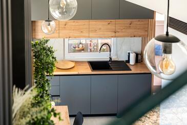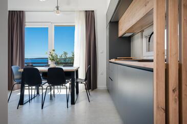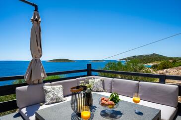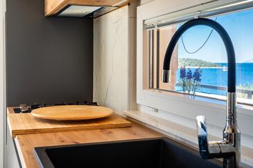 Haus bietet Platz für 6 Gäste. Die Betten sind in Schlafzimmern, die es 3 gibt, innerhalb einer Gesamtfläche von 53m2, angeordnet. Die Gäste haben eine eigene Terrasse zur Verfügung, auf der sie in warmen Sommernächten genießen können. Das Haus bietet Meerblick. Für vollen Genuss und Entspannung gibt es einen privaten Grill für Gäste dieser Unterkunft.