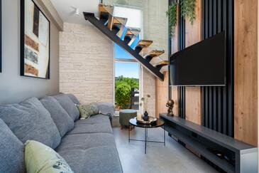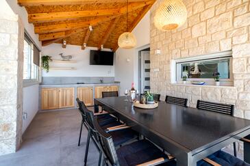 Haus bietet Platz für 6 Gäste. Die Betten sind in Schlafzimmern, die es 3 gibt, innerhalb einer Gesamtfläche von 53m2, angeordnet. Die Gäste haben eine eigene Terrasse zur Verfügung, auf der sie in warmen Sommernächten genießen können. Das Haus bietet Meerblick. Für vollen Genuss und Entspannung gibt es einen privaten Grill für Gäste dieser Unterkunft.