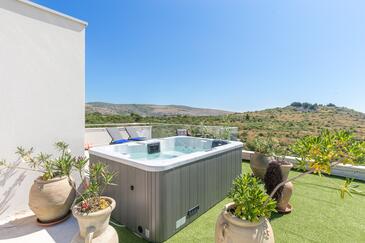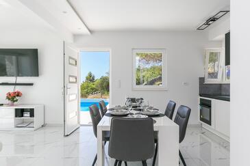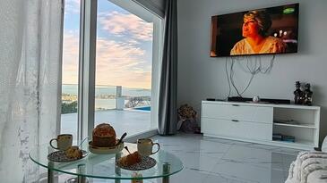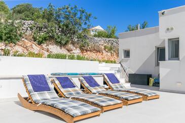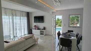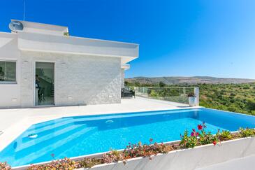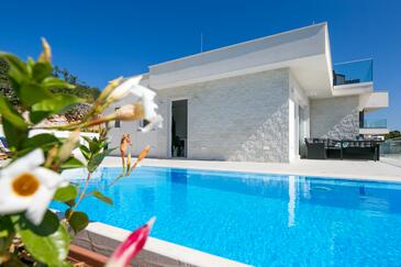 Haus bietet Platz für 6 Gäste. Die Betten sind in Schlafzimmern, die es 2 gibt, und in Wohnzimmer, innerhalb einer Gesamtfläche von 114m2, angeordnet. Die Gäste haben eine eigene Terrasse zur Verfügung, auf der sie in warmen Sommernächten genießen können. Das Haus bietet Meerblick. Für vollen Genuss und Entspannung gibt es einen privaten Grill für Gäste dieser Unterkunft. Während ihres Aufenthalts können sich Gäste im privaten Schwimmbad entspannen.