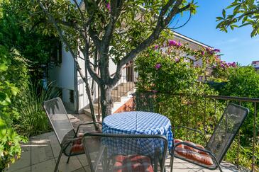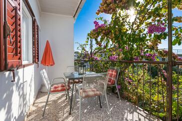 Ferienwohnung bietet Platz für 5 Gäste. Die Betten sind in Schlafzimmern, die es 2 gibt, und in Wohnzimmer, innerhalb einer Gesamtfläche von 48m2, angeordnet. Die Gäste haben eine eigene Terrasse zur Verfügung, auf der sie in warmen Sommernächten genießen können. Das Apartment bietet Meerblick. Es ist erlaubt, Speisen auf dem Gemeinschafts-Grill vorzubereiten. In der Unterkunftseinheit besteht die Möglichkeit des Mitbringens von Haustieren gegen Aufpreis.
