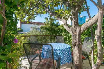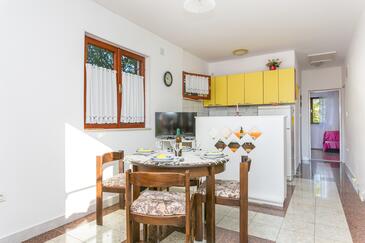 Ferienwohnung bietet Platz für 5 Gäste. Die Betten sind in Schlafzimmern, die es 2 gibt, und in Wohnzimmer, innerhalb einer Gesamtfläche von 48m2, angeordnet. Die Gäste haben eine eigene Terrasse zur Verfügung, auf der sie in warmen Sommernächten genießen können. Das Apartment bietet Meerblick. Es ist erlaubt, Speisen auf dem Gemeinschafts-Grill vorzubereiten. In der Unterkunftseinheit besteht die Möglichkeit des Mitbringens von Haustieren gegen Aufpreis.